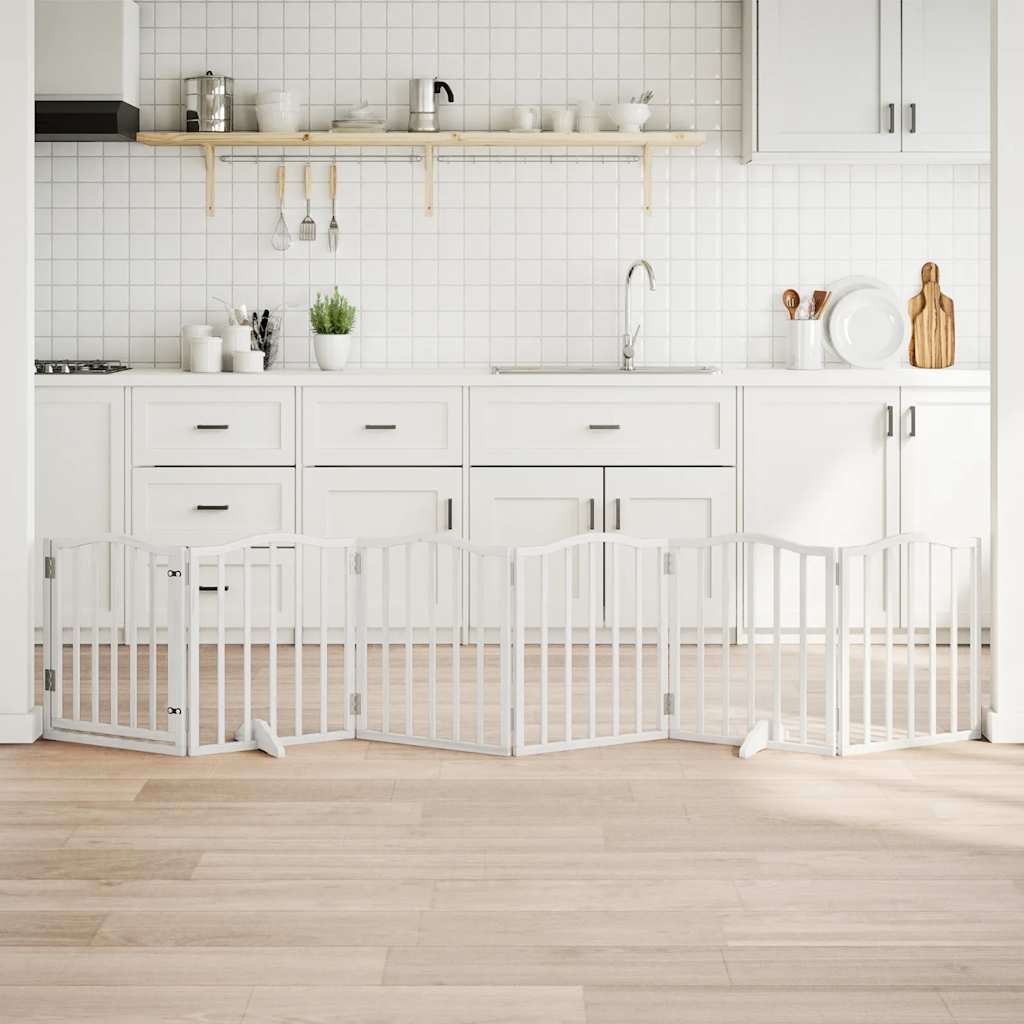 Dog Gate with Door Foldable 6 Panels White 300 cm Poplar Wood