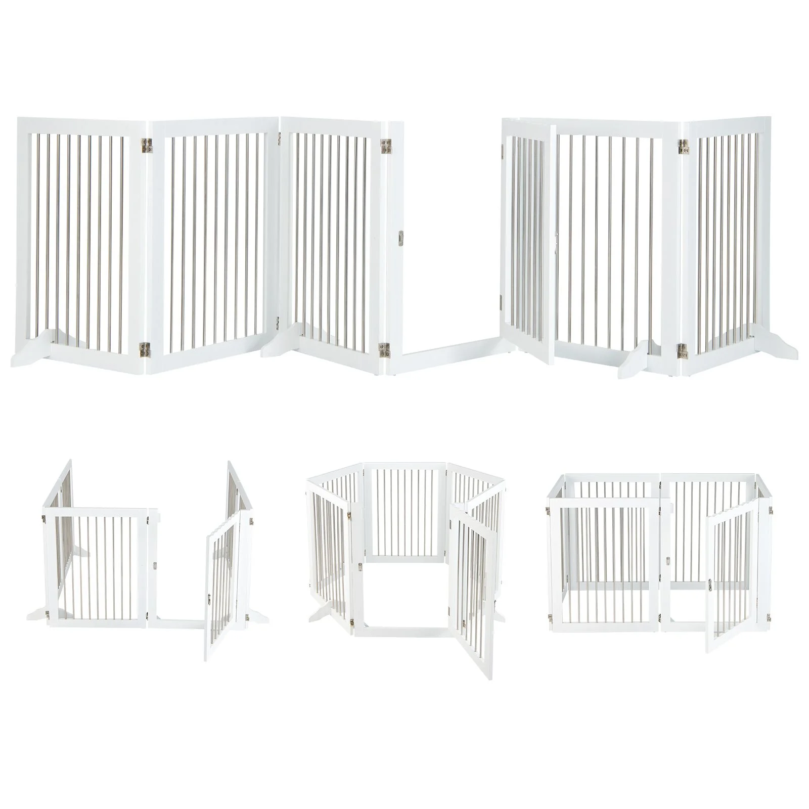 SMONTER Free Standing Dog Gate with Door Walk 6 Panels 306.3cm(W) x 80cm(H)
