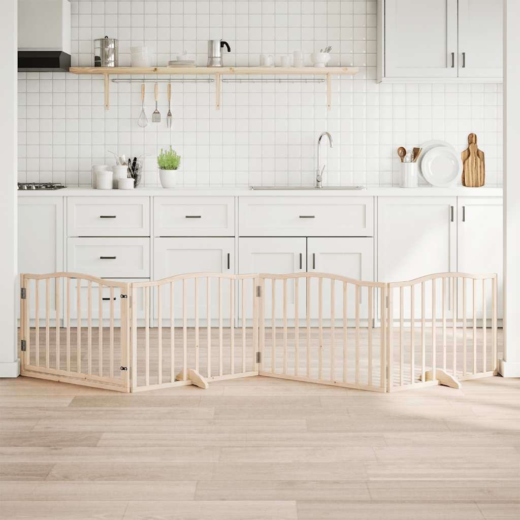 Dog Gate with Door Foldable 4 Panels 320 cm Poplar Wood