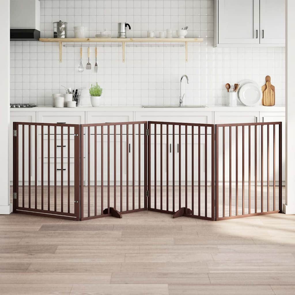 Dog Gate with Door Foldable 4 Panels Brown 320 cm Poplar Wood