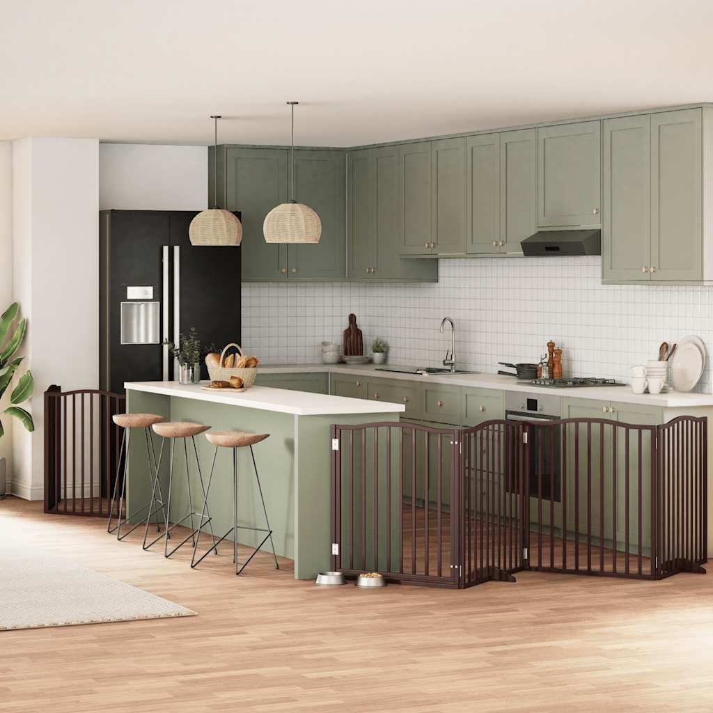 Dog Gate with Door Foldable 6 Panels Brown 480 cm Poplar Wood
