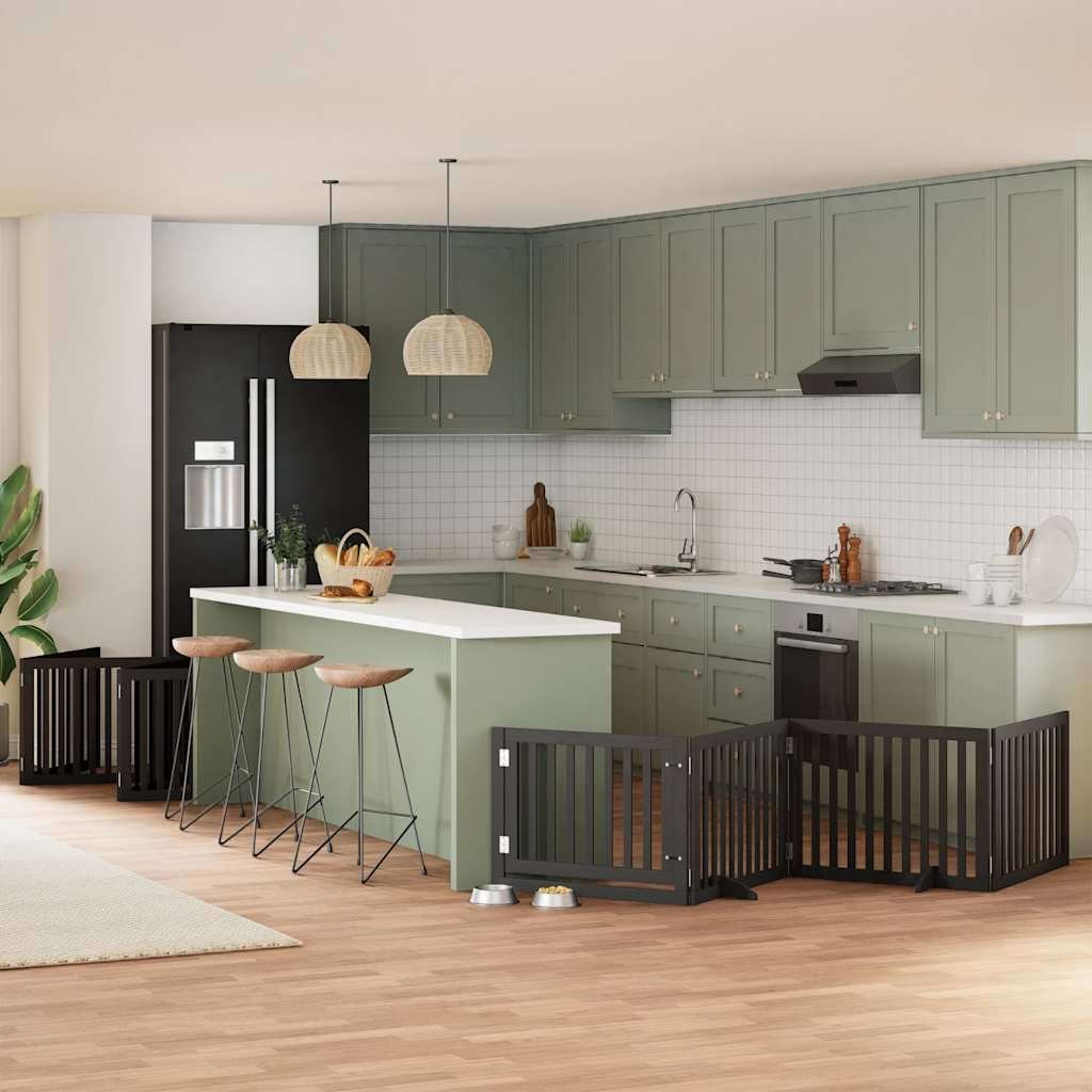 Dog Gate with Door Foldable 8 Panels Black 640 cm Poplar Wood