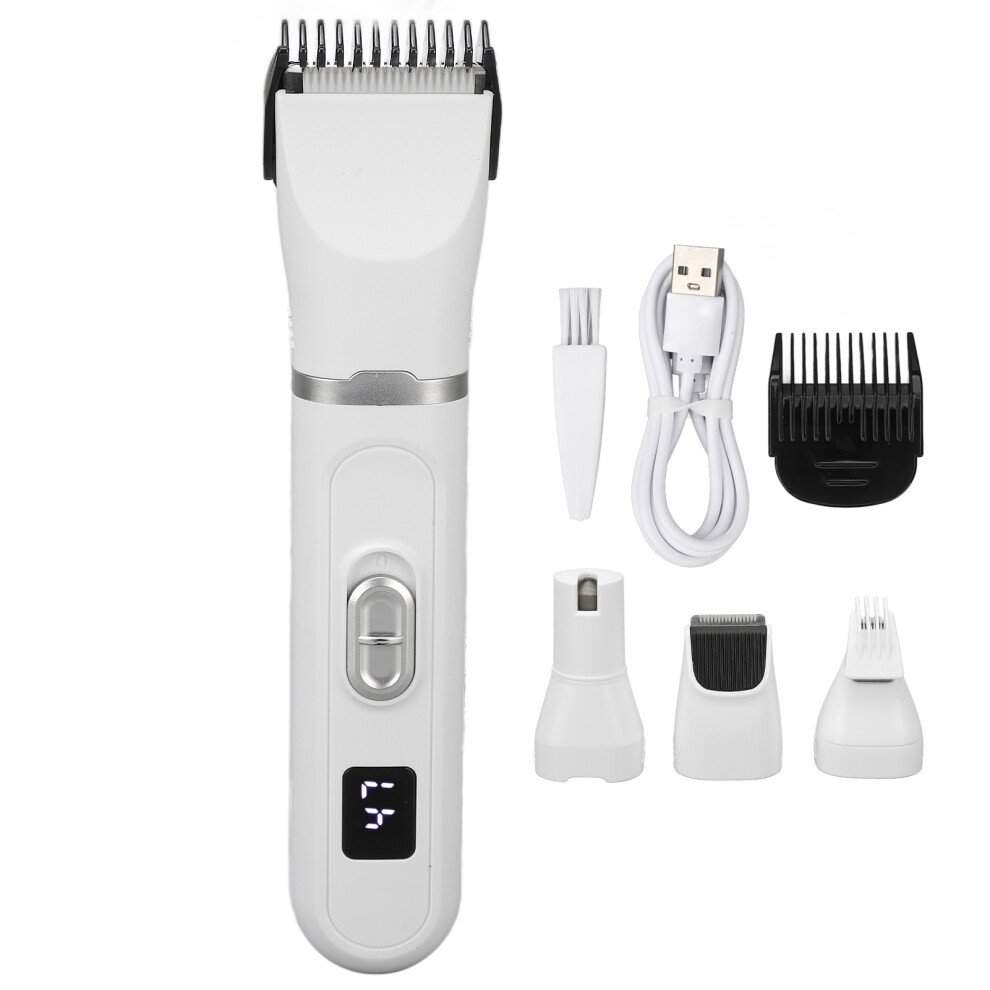 (white) Dog Hair Clippers Grooming Kit with Nail Grinder 4 in 1 Cordless Electric Trimmer for Dogs Cat Low Noise USB Rechargeable Pet Paw Shaver