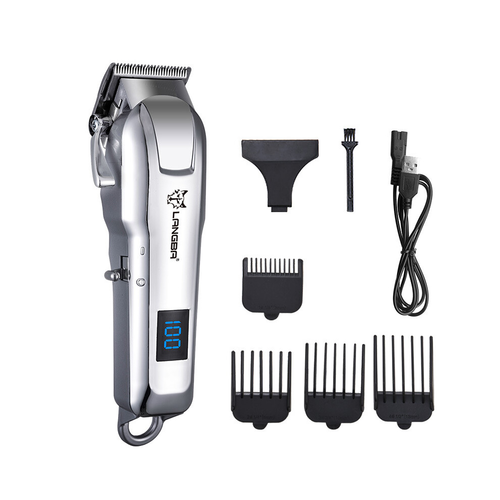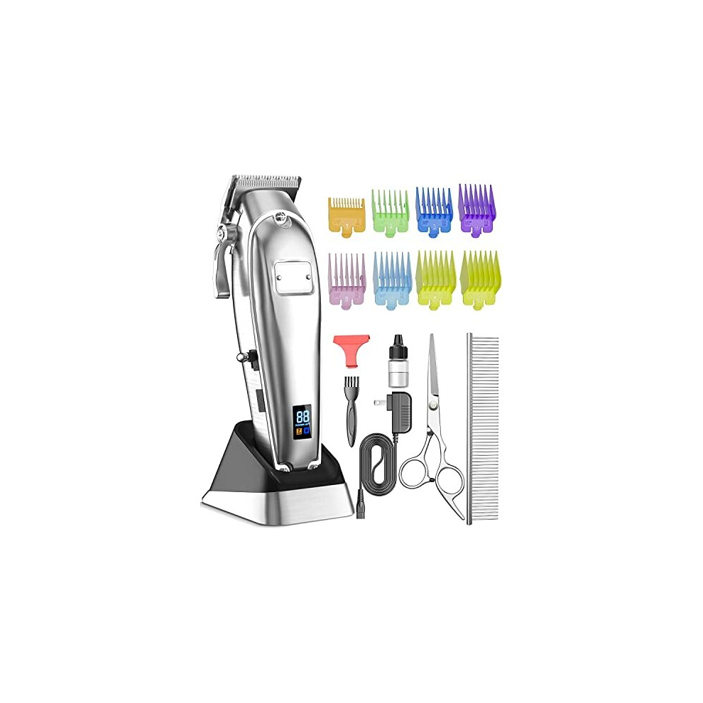 (Silver) LANGBA Digital Display Cat Dog Clipper Electric Pet Trimmer Dog Grooming Clippers with 4 Limit Combs