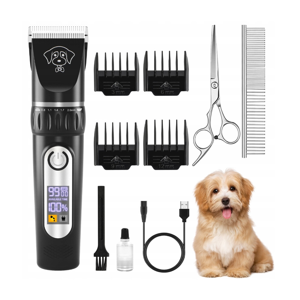 Pet Hair Clipper with LED Light, USB Rechargeable, Cordless, Quiet Dog Grooming Clippers for Small to Large Pets