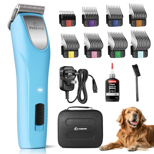 FuzzyFix Dog Clippers Professional for Thick Hair, Low Noise Clippers Cordless Ergonomic Design with 2-Speed,Dog Grooming Kit for Cockapoos Labradoodles Poodles & Cavapoos with Metal Comb Guides