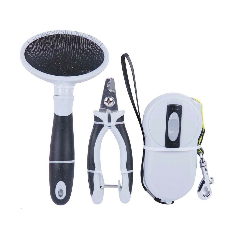 3 Piece Dog Grooming Kit Nail Clippers Slicker Brush Retractable Lead
