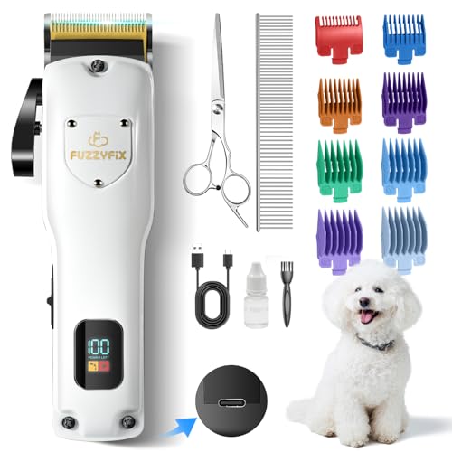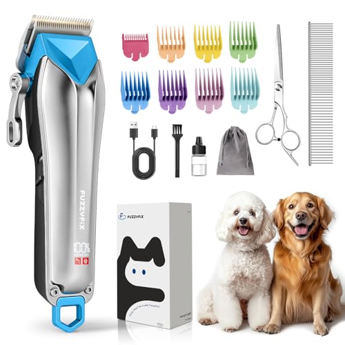 FuzzyFix Dog Clippers for Grooming for Thick Heavy Coats, Professional Pet Grooming Clippers Supplies Kit Low Noise Rechargeable Stainless Steel Hair Trimmer with Ceramic Blade for Dogs Cats Animals