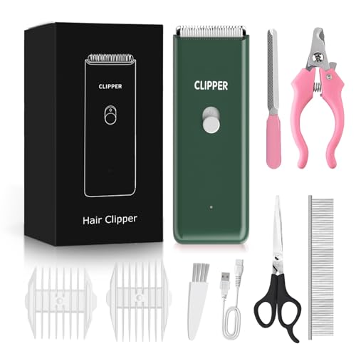 Dog Grooming Kit Electric Pet Paw Trimmer Low Noise Cordless Cat Clippers for Dog Cat Home Hair Grooming,Waterproof Pet Grooming Tools with 9-Pieces (Green)