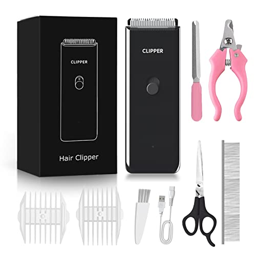 Dog Grooming Kit Electric Pet Paw Trimmer Low Noise Cordless Pet Clippers for Dog Cat Home Hair Grooming,Waterproof Cat Grooming Tools with 9-Pieces (Black)