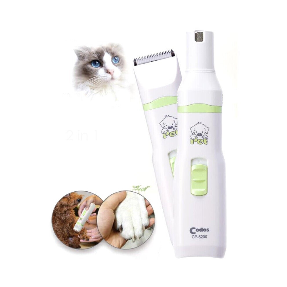 2 in 1 Professional Pet Dog Cat Hair Trimmer Paw Nail Grinder Grooming Clippers Nail Cutter Hair Cutting Machine Pet Care Tool