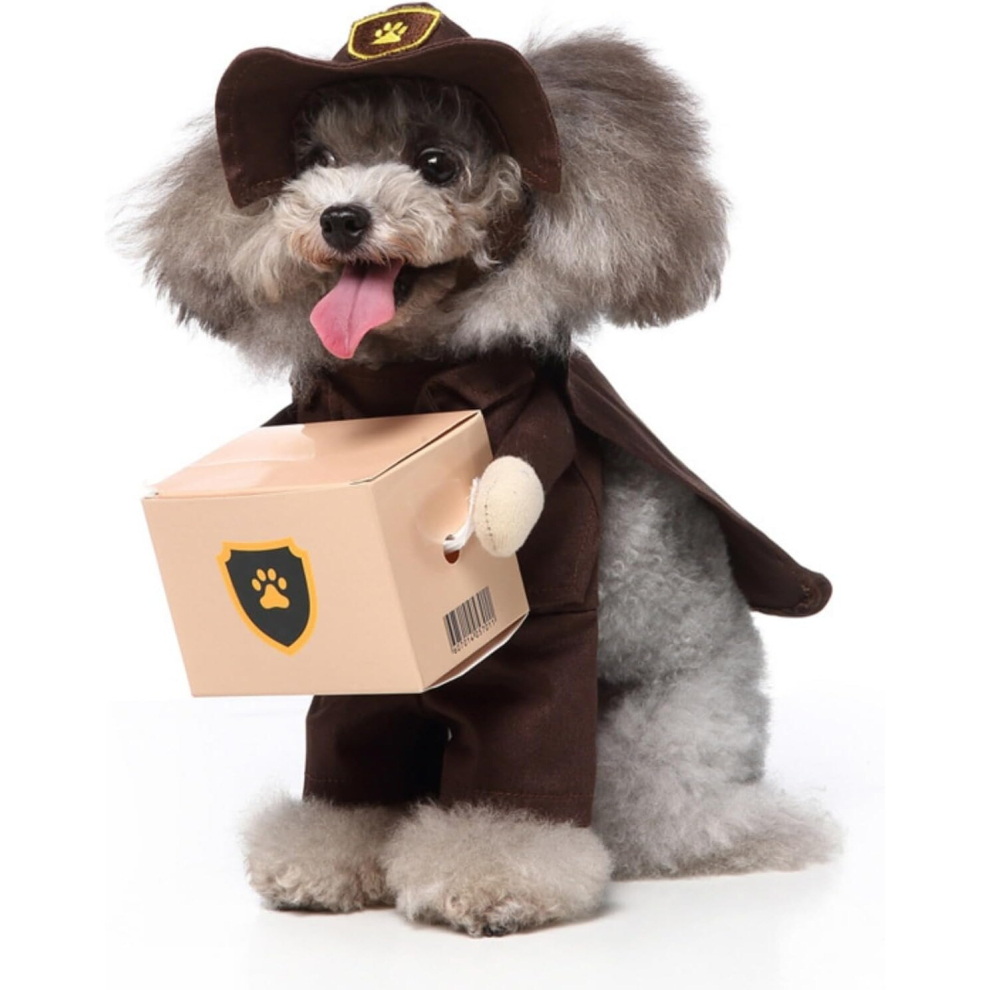 Dog Halloween Costume-Spooktacular Cosplay Outfit for Small-Medium Dogs & Cats with Hat Included-Clothes for Halloween Party(Mail Carrier Brown,XL)