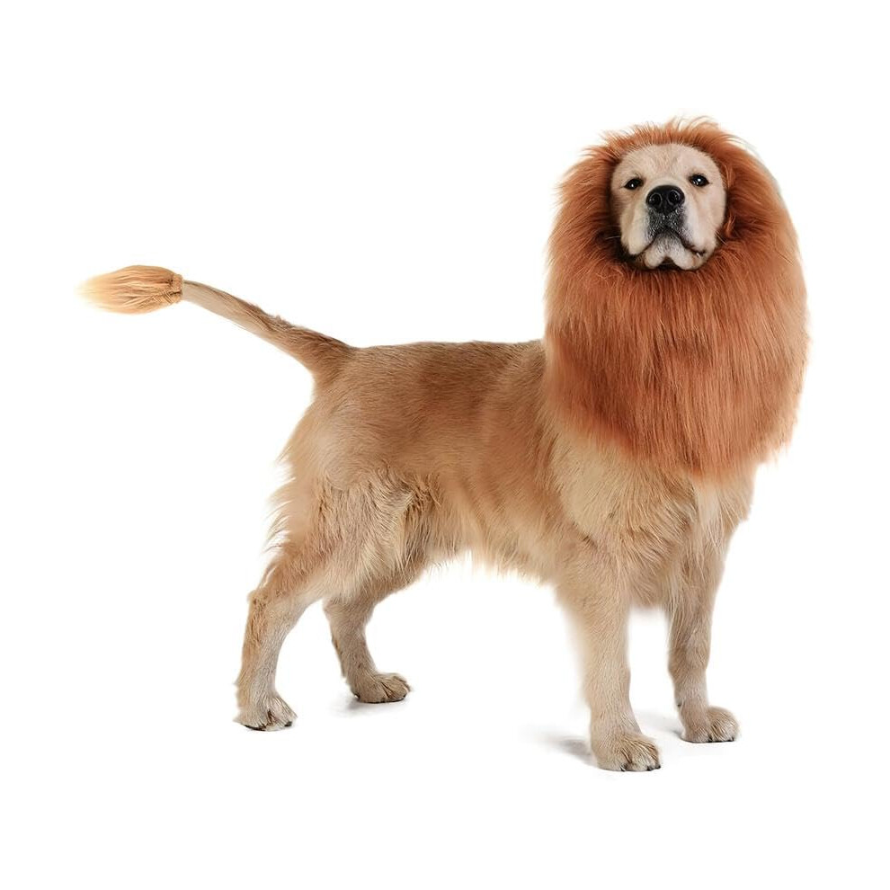 Dog Wig Lion Mane Hair Hat with Ear and Tail Funny Halloween Dog Costume for Large Dogs Golden Retriever(Lion)