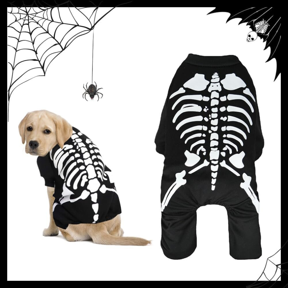 Skeletal Dog Clothes - Hooded for Pets, Halloween Themed Dress | Scary Costume Dress for Small Large Dogs, Jumping Clothes