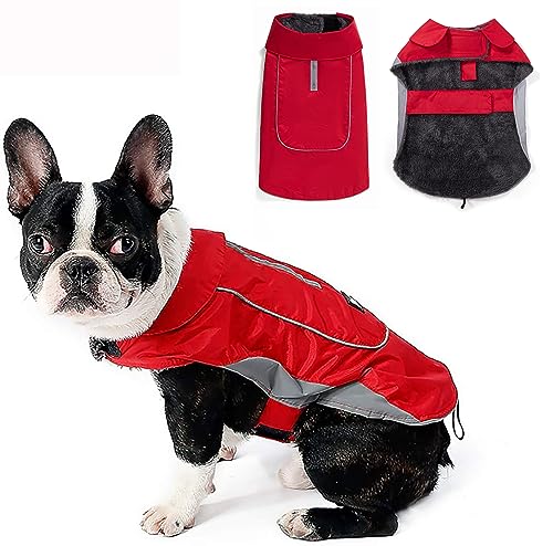 Lelepet Warm Coats and Jackets for Dogs, Waterproof Winter Dog Coat for Cold Weather, Reflective Dog Puffer Jacket, Fleece Lining Pet Coat with Harness Hole for Small Dogs, Red S