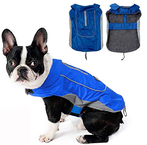 Morezi Dog Warm Coats Jackets Waterproof Coats with Harness Hole Puppy Coat for Small Medium Dogs - Blue - XL