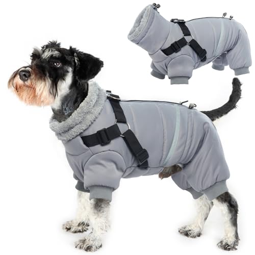 Dog Coats Waterproof with Harness, Zip Up Coat Warm All In One Dog Coat Fleece Lined Full Body Jacket Waterproof Fleece with Zip Easy to Put on and Take off(Grey, L)