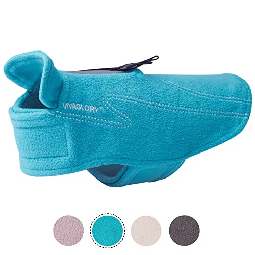 VIVAGLORY Cozywrap Dog Fleece Jumper, Fleece Dog Coat for Fall & Spring, Reflective Lightweight Cozy Adjustable Easy Fit, Coat with Harness Hole & Velcro Closure, S, Turquoise