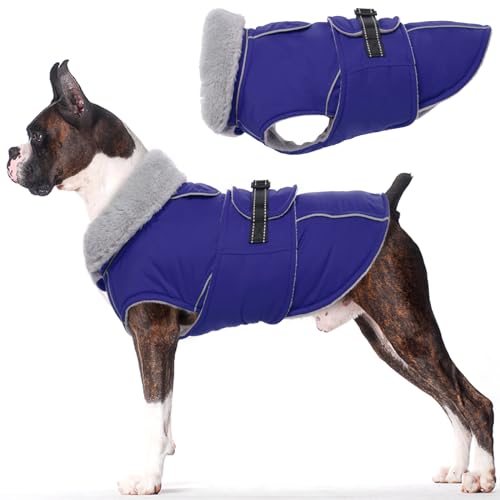 Lelepet Warm Coats and Jackets for Dogs, Waterproof Winter Dog Coat for Cold Weather, Reflective Dog Puffer Jacket, Fleece Lining Pet Coat with Harness Hole for Large Dogs, Blue XL