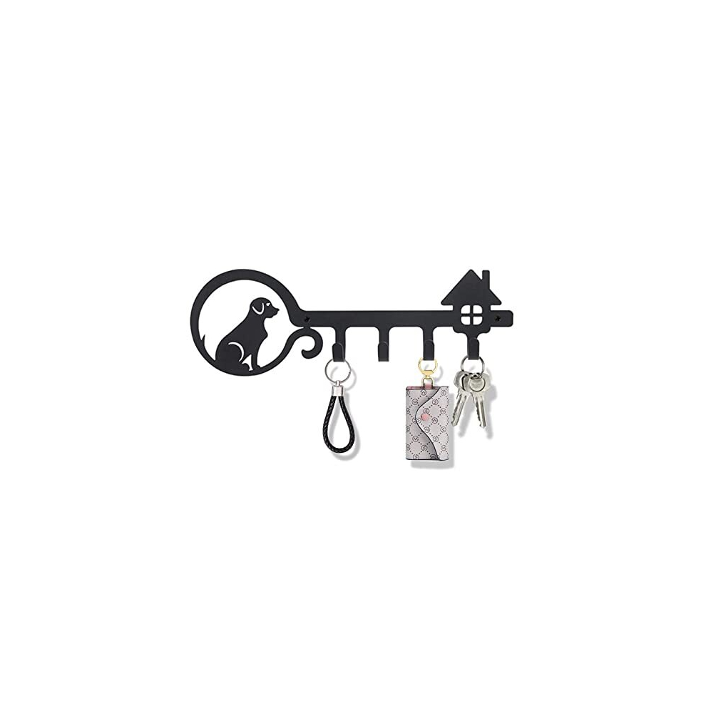 Key Hooks Wall Mounted, 4 Hooks Durable Dog and House Decorative Key Holder for Wall Door Room Kitchen Black Wall Hook