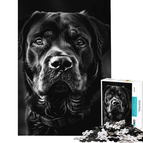 Jigsaw 1000 Pieces for Adults Great Rottweiler Dog in BW Toy Intellectual Game Family Game Suitable for Couples Great Gifts for Games (Size 38x26cm)
