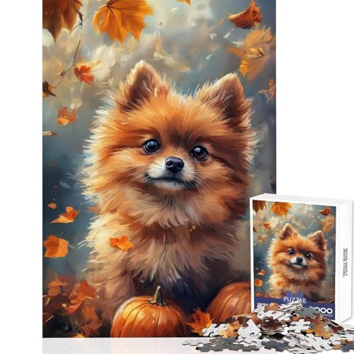 Hard Jigsaw Puzzle for Adults 1000 Pieces Pomeranian Dog in Autumn Scenery Toy Wall Decor Gift Birthday for Educational Game Every Piece Is Unique - Size 38x26cm