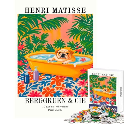 Jigsaw Puzzle for Teenagers 1000 Pieces Henri Matisse Dog in Bathtub Art Toy Wall Decor Birthday Gift Hands-on Game Difficult And Challenge Size 38x26cm