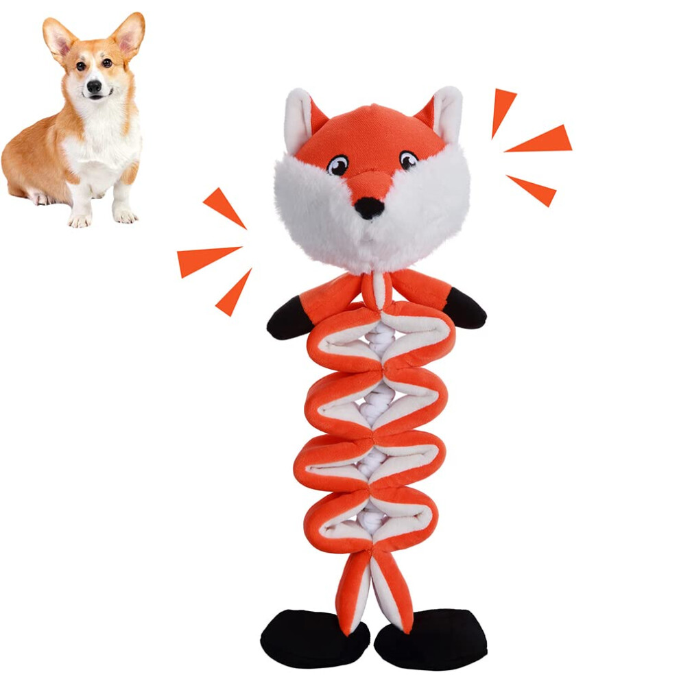 warmtoy Plush Dog Toy in Orange Fox Shape Durable and Interactive Dog Toy for Tug of War and Chew Play for Small and Medium Dogs
