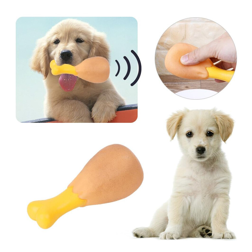 Durable Rubber Dog Chew Toy in the Shape of a Chicken Drumstick with Squeaker for Interactive Puppy Play