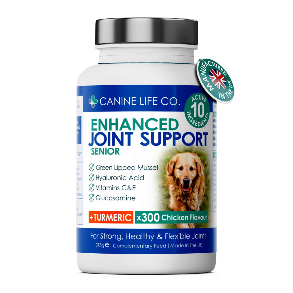 Senior Dog Joint Supplement High Strength With Turmeric Glucosamine & Green Lipped Mussel | For Older Stiffer Dogs Age 8+ | 300 Chewable Tablets |