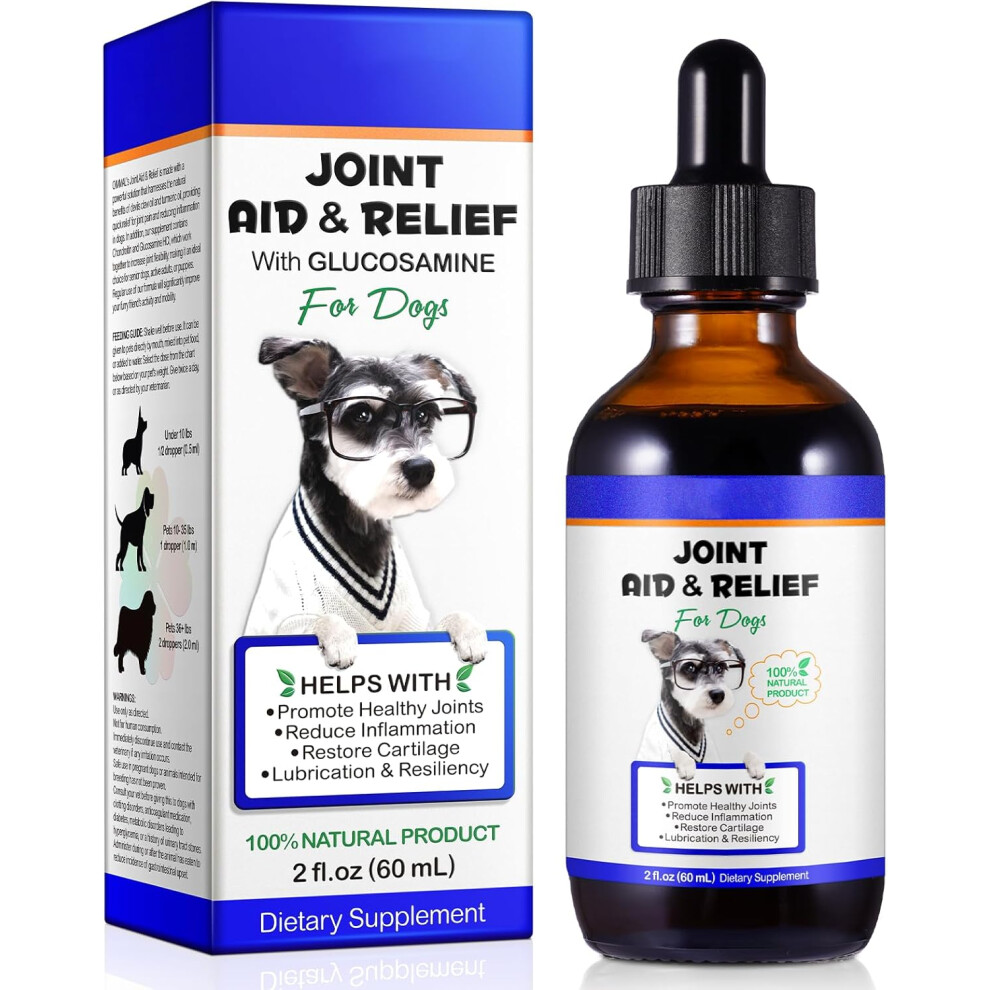 (2 fl oz) Joint & Hip Supplement with Glucosamine for Dogs, Joint Aid Liquid Drops with Chondroitin and Turmeric Oil Supports Dog Joint Pain Relief
