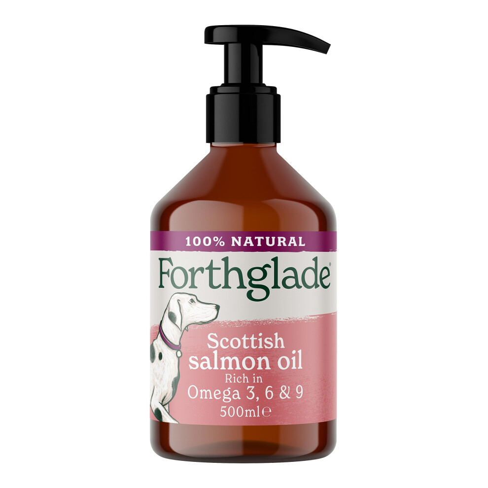 Forthglade Scottish Salmon Oil for Dogs (1 x 500ml), UK Sourced Omega 3 Fish Oil Dog Joint Supplement for Pets Aged 4+ Months, 100% Natural Premium Quality Dog Vitamins for Everyday Wellbeing