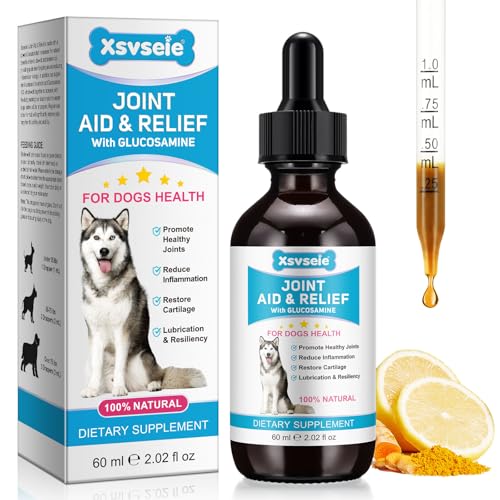 Dog Pain Relief Liquid,Pain Relief for Dogs,Joint & Hip Supplement with Glucosamine with Turmeric Oil for Dogs,Natural Formula for Joint Pain and Inflammation,Pain Relief for Older & Stiff Dogs,60ml
