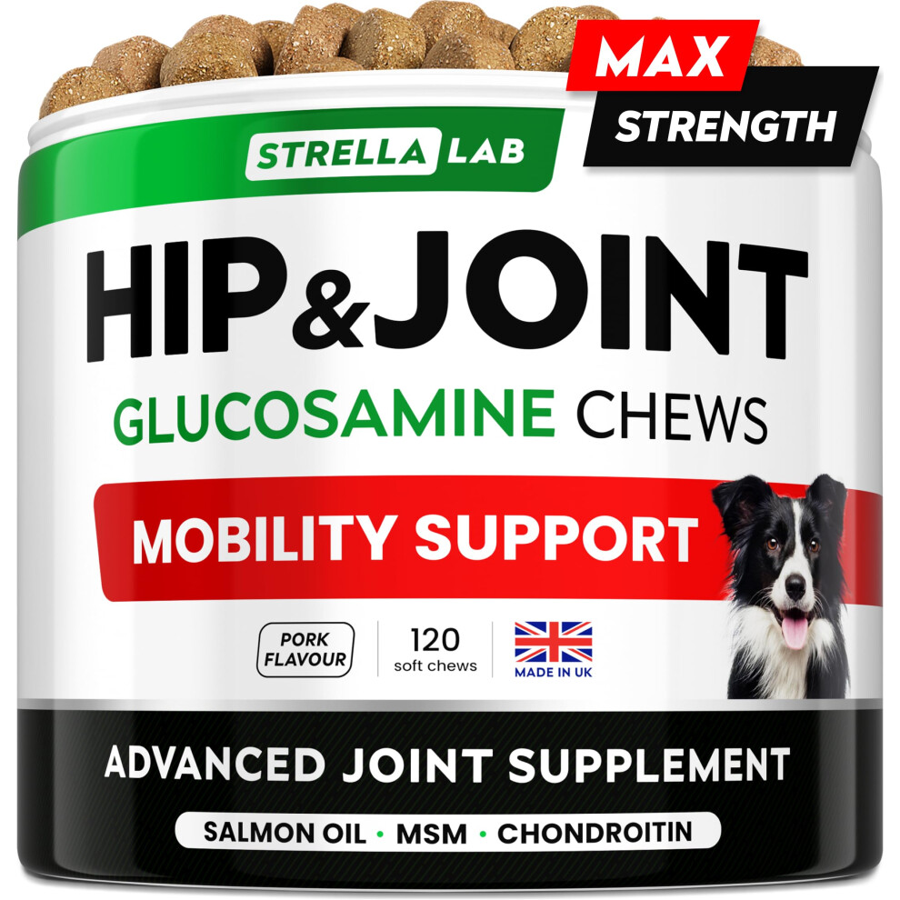 STRELLALAB – Treats Over Tablets! Advanced Dog Joint Supplement Chews – Hip & Joint Health Care with Glucosamine & Chondroitin – Made in UK – Senior & Adult - 120 Count