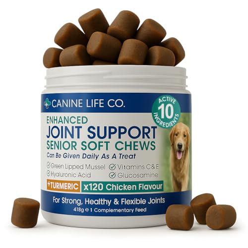 Canine Life Co. Senior Dog Joint Supplement – 10 Active Ingredients with Glucosamine, Green Lipped Mussel & Turmeric – High Strength Soft Chews for Dogs Aged 8+ – 120 Chicken-Flavoured Treats