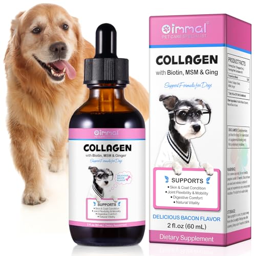Collagen for Dogs (60ml), Dog Collagen Drops with Biotin, MSM - Supports Joint Health, Skin, Coat & Immunity – Tasty Bacon-Flavored Liquid Supplement for All Breeds & Sizes (60ml(Pack of 1))