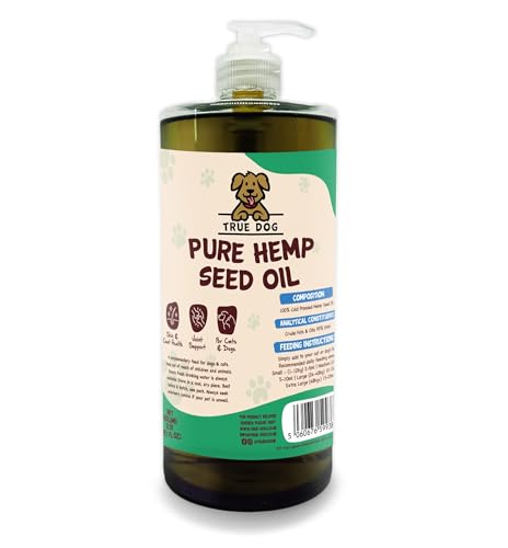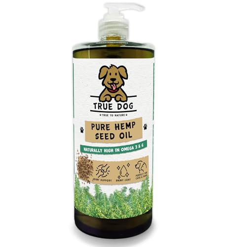 True Dog Hemp Oil for Dogs - Natural Dog & Cat Feed Supplement with omega 3, 6, 9 support hip, joint & dog calming- 100% Pure Cold Pressed (1ltr)
