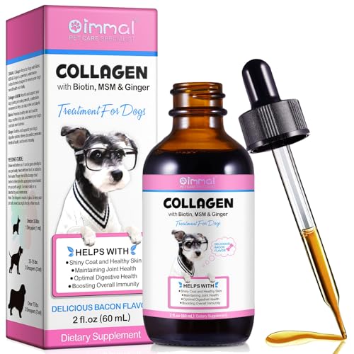 Liquid Collagen for Dogs, Skin and Coat Collagen Supplement, Dog Joint Supplements, Dry and Itchy Skin Relief, Support Digestive Health, Dog Collagen Drops with Biotin, MSM, Ginger, Bacon Flavor