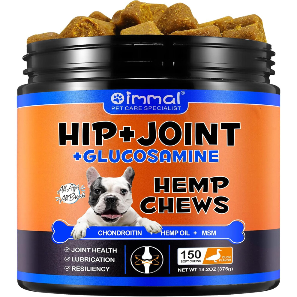 Joint & Hip Chews for Dogs - Support Joint Pain Relief - Dog Hip and Joint Supplement with Hemp Oil, Glucosamine Chondroitin for Dog, Soft Chews for