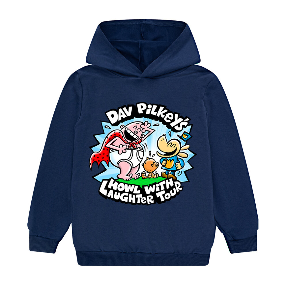 (Navy Blue 4, 120cm) Dog Man Cartoon Print Hooded Sweatshirt for Kids and Teens B761