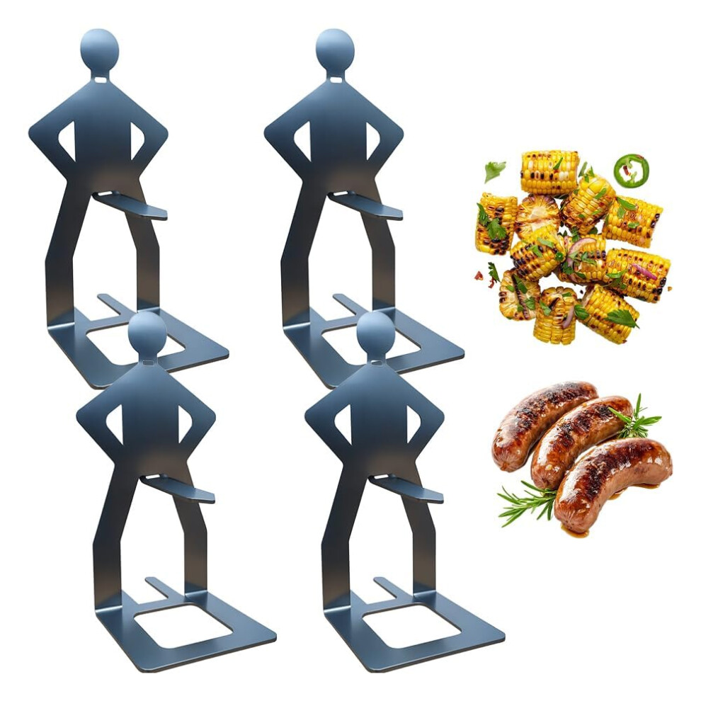 Stainless Steel Hot Dog Grill Holders - 4 Pack Creative Standing Man Sausage BBQ Tools for Gas Grills and Camping