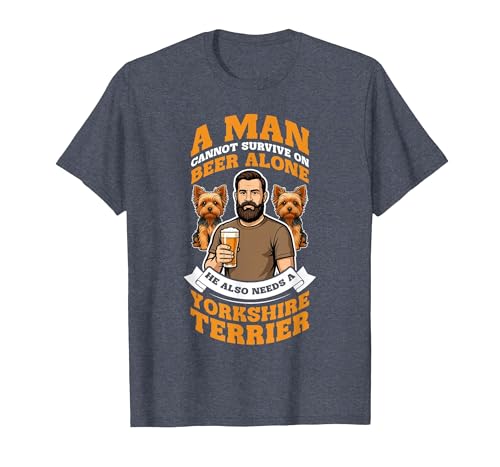 A Man Needs Beer and A Yorkshire Terrier. Dog Lovers Humor T-Shirt, Men, Heather Blue, 4X-Large