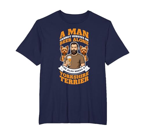 A Man Needs Beer and A Yorkshire Terrier. Dog Lovers Humor T-Shirt, Men, Navy Blue, 4X-Large