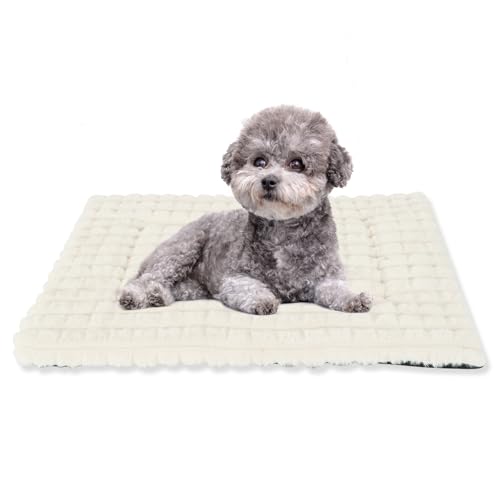 BVAGSS Dog Bed Washable Crate Mattress,Anti-Slip Crate Pad, Memory Foam Dog Beds, Soft Warm Pet Cushion for Small Medium Dogs, Calming Fluffy Sleeping Kennel Bed Pad XH082 (60x45cm,White)