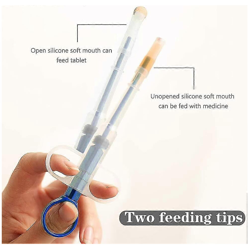 (Blue) Pet Medicine Feeding Syringe Cat Dog Tablet Syringe 2 Tips