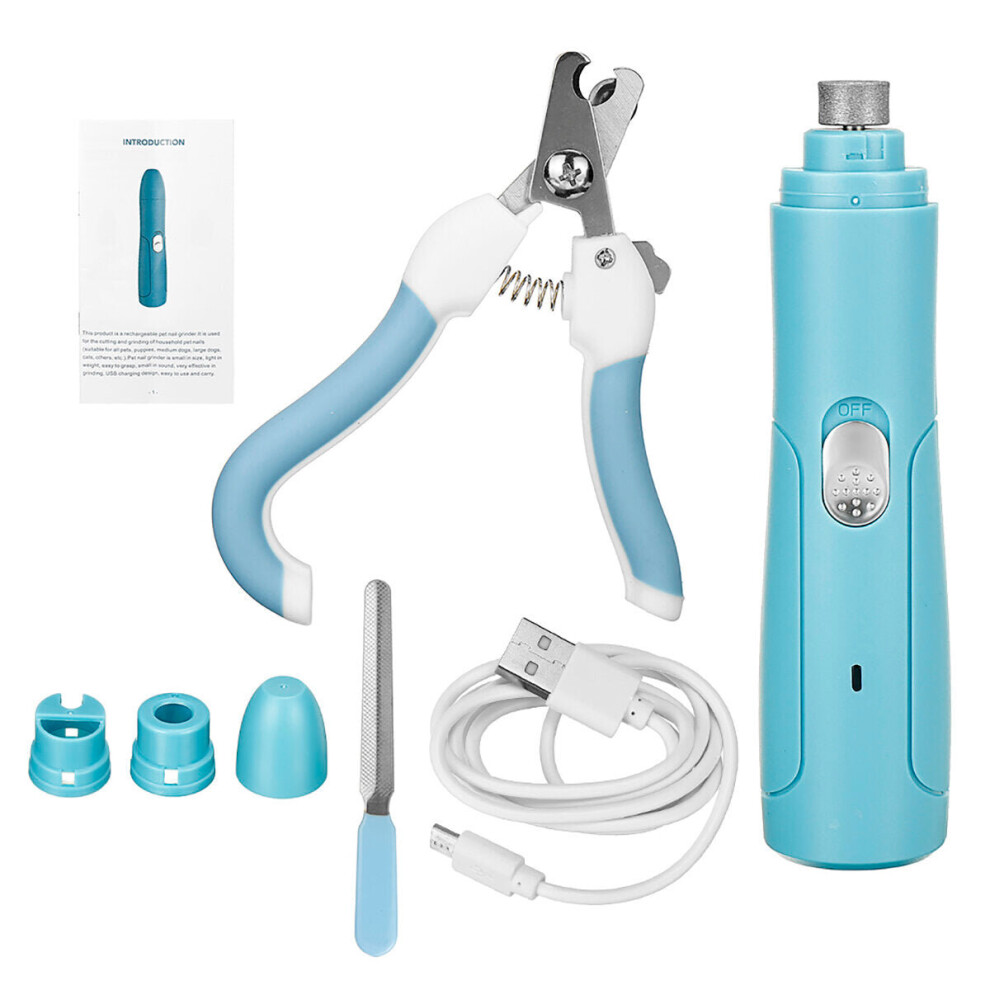 (Blue) Dog Nail Grinder USB Rechargeable Electric Dog Nail Clippers Clipper for Cat Nail Cutter Pet Grooming Equipment Pet Supplies