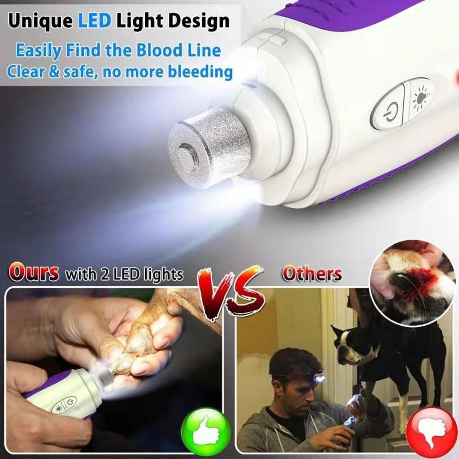with LED Lights Dog Nail Trimmer Dog Nail Grinder Pet Supplies