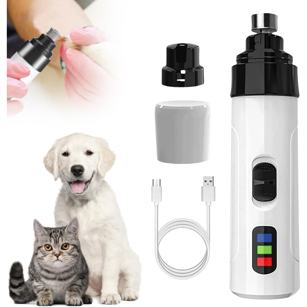 (White) Speed Dog Nail Grinder Professional Electric Rechargeable Pet Nail Trimmer Painless Paws Grooming & Smoothing for Small Medium Large Dogs & Ca