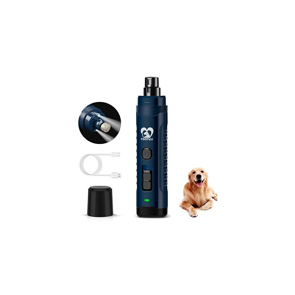Casfuy Dog Nail Grinder with 2 LED Light for Large Medium Dogs - 3X More Powerful 2-Speed Electric Pet Nail Trimmer Rechargeable Quiet Painless Paws