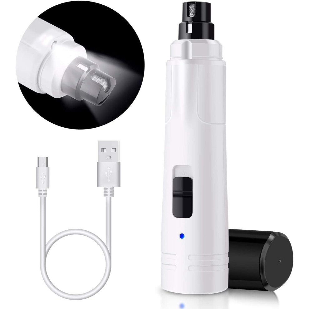 (White) Speed Dog Nail Grinder Upgraded Professional LED Lighting Pet Nail Trimmer Rechargeable, Quite Low Noise, Paws Grooming and Smoothing